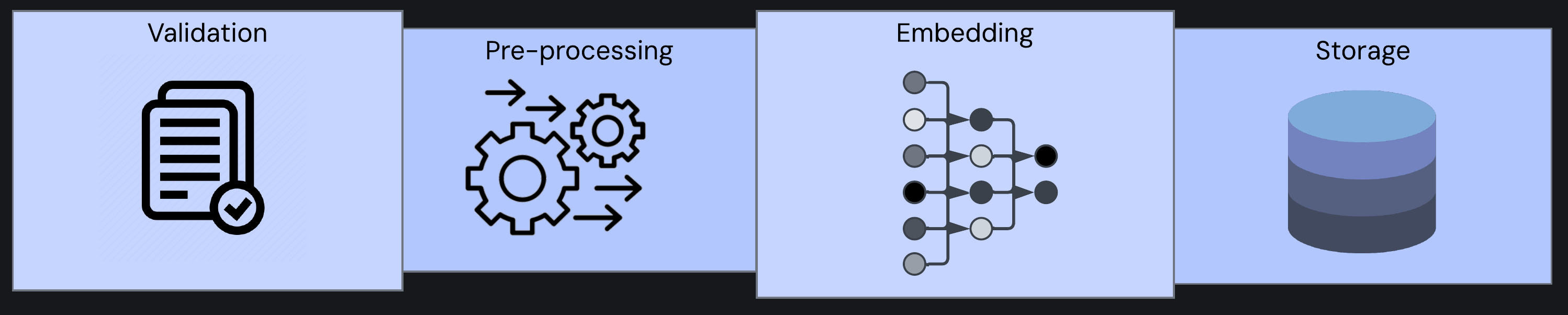 An “embedding pipeline” must feature error handling, retry mechanisms, and scalability to function reliably in production. While stitching together these components manually offers maximum flexibility, it quickly becomes time-consuming, error-prone, and difficult to scale and maintain.